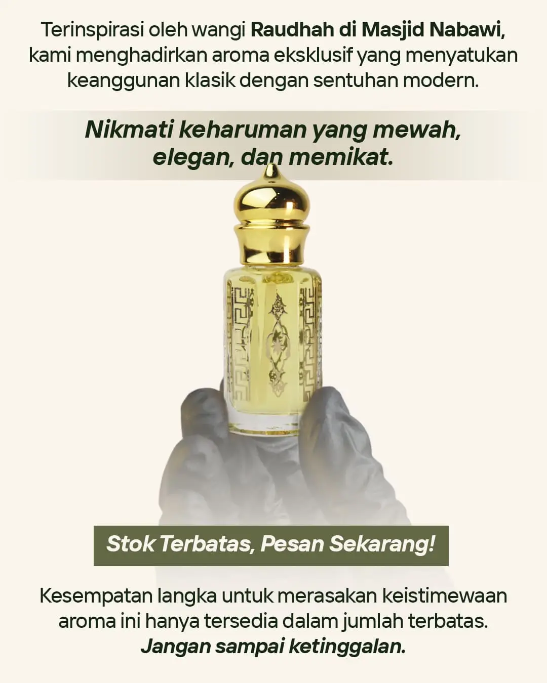 MENGGUNAKAN MINYAK GAHARU GOLD UNTUK AKTIVITAS RAMADHAN MEMILIKI KESAN BERBEDA DENGAN YANG LAIN KARENA BAHAN YANG DIGUNAKAN JARANG ORANG LAIN PUNYA ATAU ELEGAN DENGAN WANGI YANG KHAS DARI GAHARU SEMUA PASTI AKAN TERTARIK DENGAN WANGI PARFUM GAHARU GOLD.