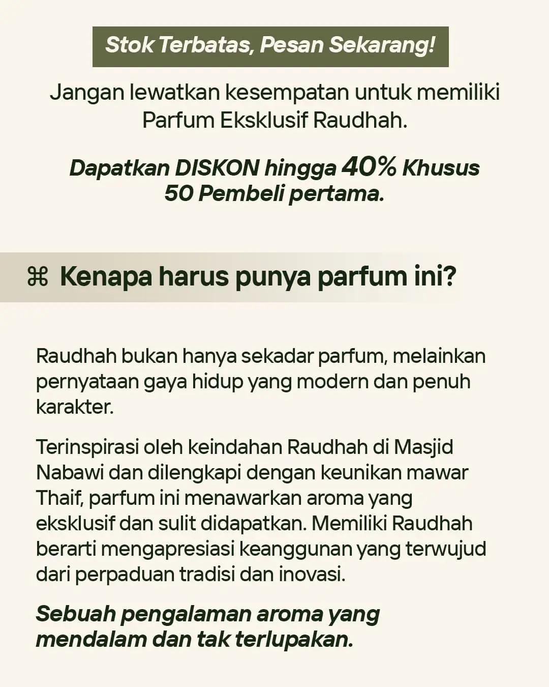EDISI TERBATAS KARENA STOK GAHARU TIDAK SELALU ADA SIAPA CEPAT DIA DAPAT! PASTIKAN ANDA SALAH SATUNYA MEMILIKI PARFUM ASLI DARI MINYAK GAHARU!!