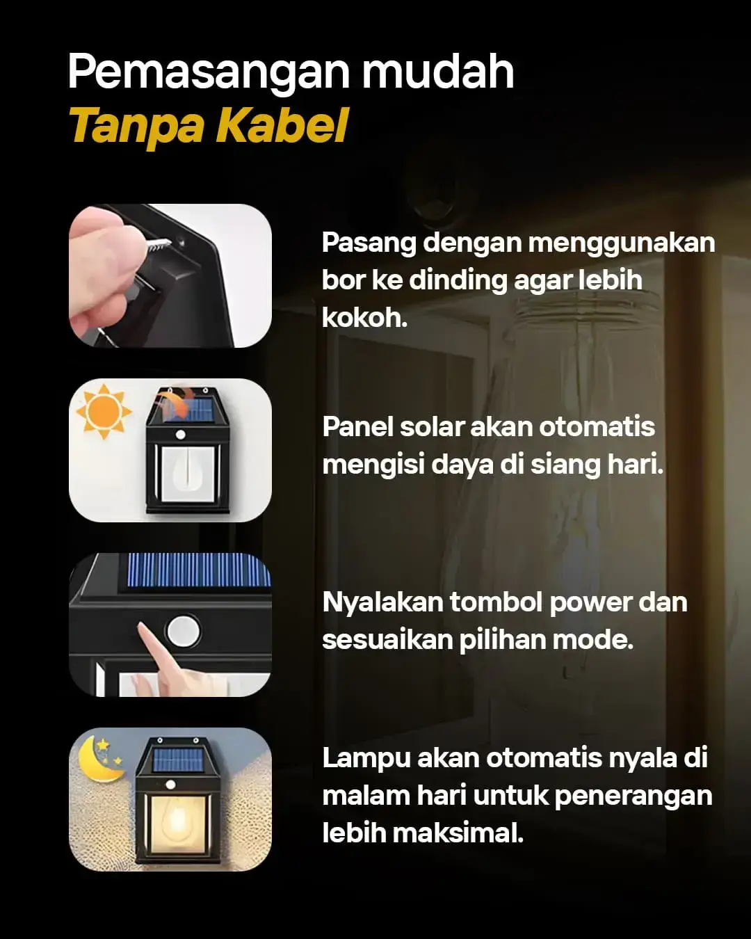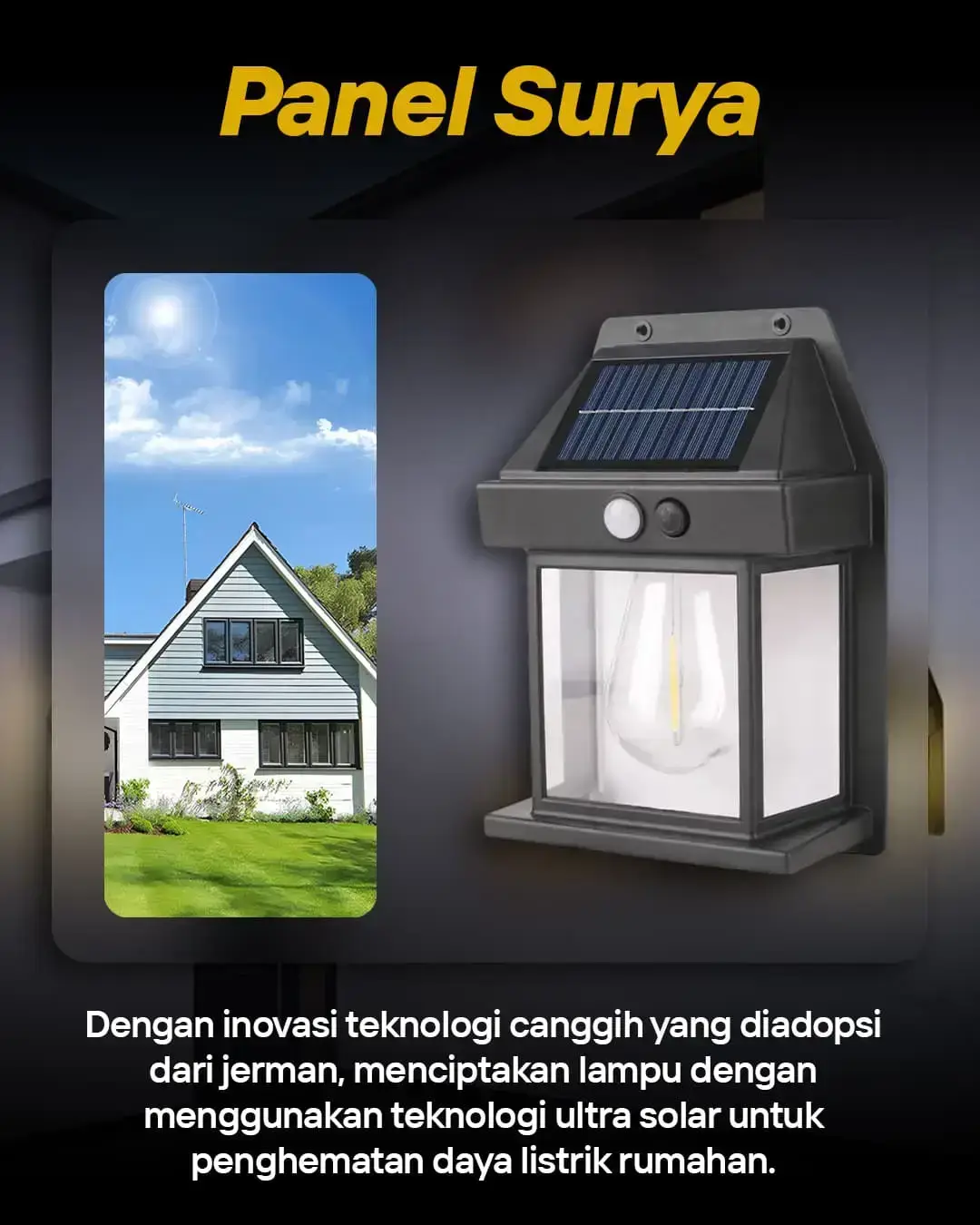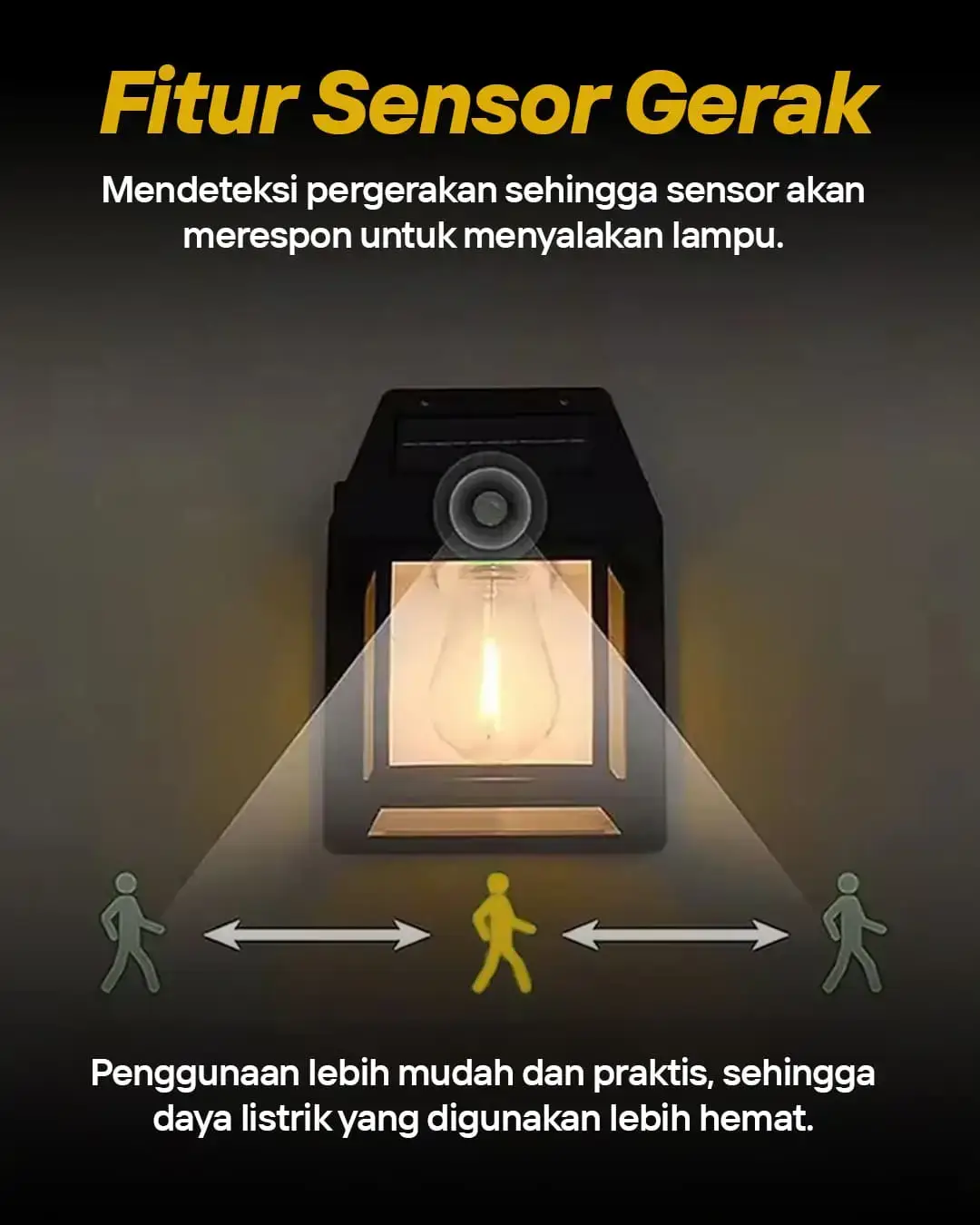 Lampu sollar cell tenaga matahari dengan sensor gerak otomatis menyala tanpa listrik