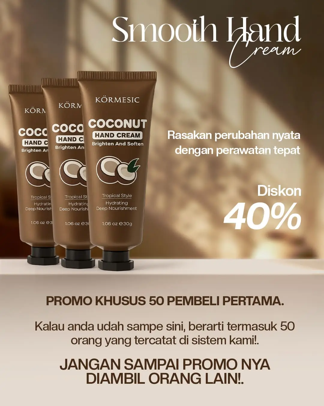 Smooth Hand Cream BPOMUncategorized·August 19, 2025August 19, 2025 Rp 298.000,- Rp.99.000 Diskon Terbatas!! 00 HARI 00 JAM 00 MENIT 00 DETIK PROMO HARGA SMOOTH HAND CREAM KRIM TANGAN BPOM Beli 2 Lebih Hemat Rp.135.000 Beli 1 Rp.99.000 Hubungi Customer Service
