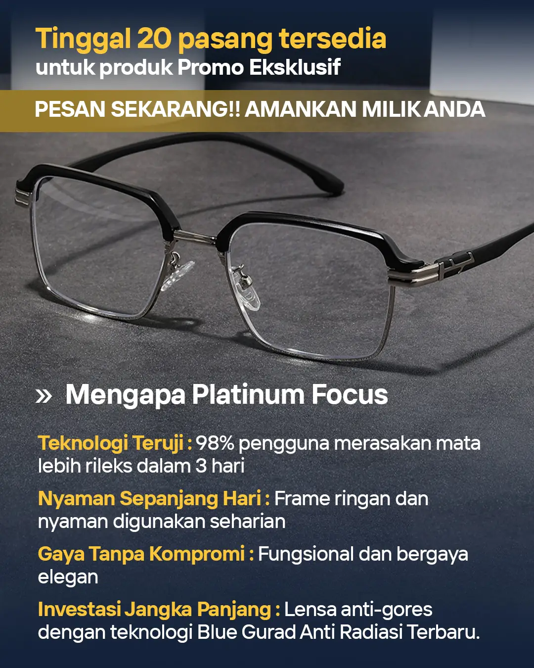 DAPATKAN KACAMATA EXCLUSIF PREMIUM DAN GARANSI SAMPAI DENGAN 1 TAHUN PEMAKAIAN.