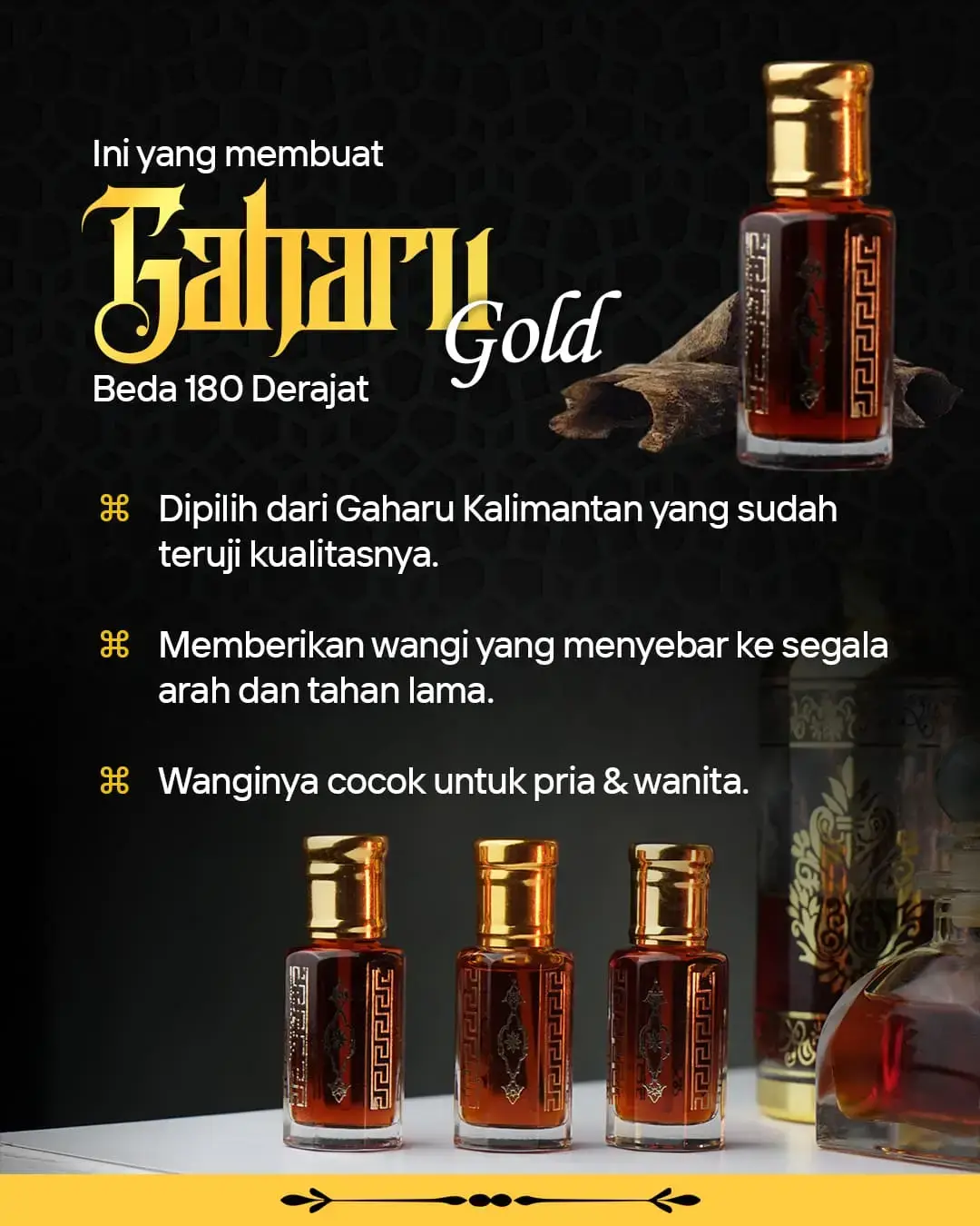 EDISI TERBATAS KARENA STOK GAHARU TIDAK SELALU ADA SIAPA CEPAT DIA DAPAT! PASTIKAN ANDA SALAH SATUNYA MEMILIKI PARFUM ASLI DARI MINYAK GAHARU!!